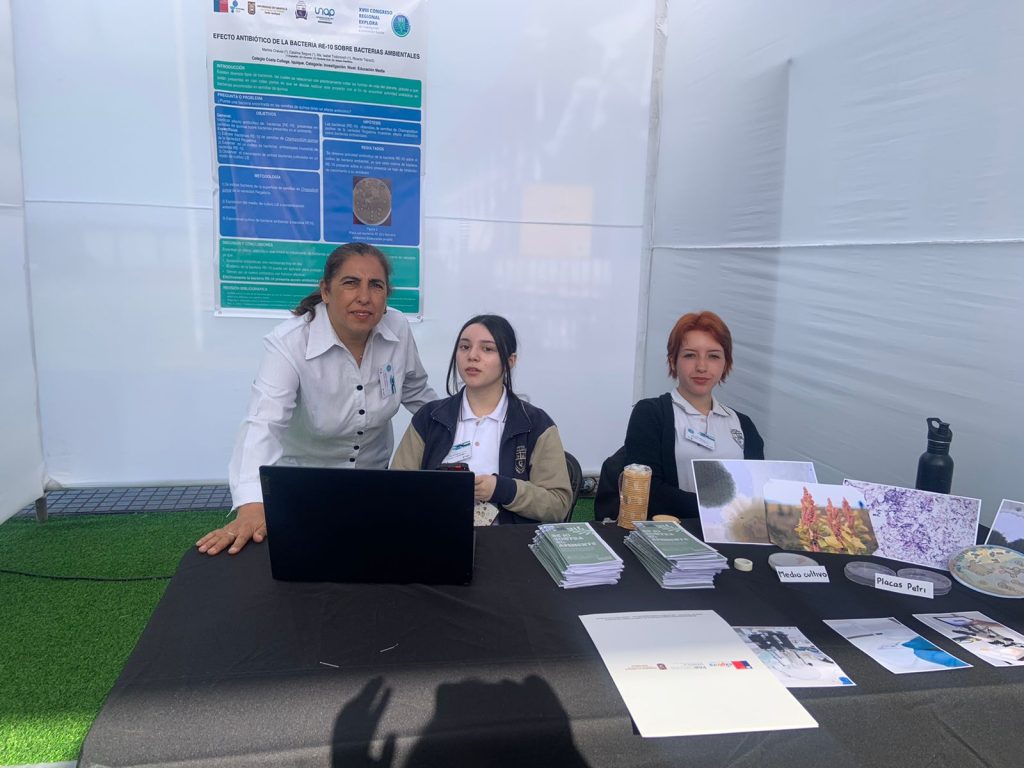 -“Regalonas contra el ambiente: efecto antibiótico de la bacteria R-10 sobre bacterias ambientales”. Presentado por las estudiantes Katalina Segura y Matilda Chávez, y dirigido por Miss María Isabel Todorovich.