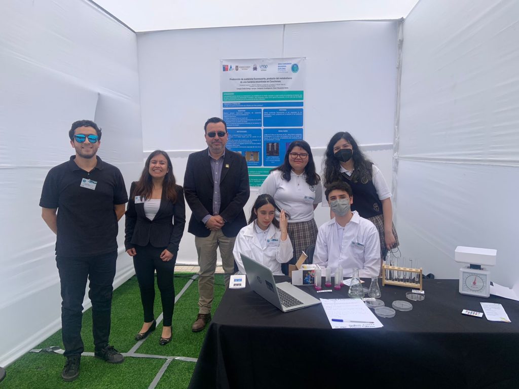 -“Producción de sustancia fluorescente, producto del metabolismo de una bacteria encontrada en Canchones”. Presentado por los estudiantes Constanza Aravena y Milován Cabezas, y dirigido por Mister Isaías de la Fuente.