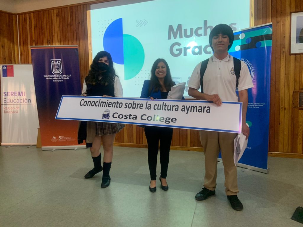 -“Conocimiento sobre la cultura Aymara en el estudiantado de 7° y 8° básico de los establecimientos de la comuna de Iquique”. Presentado por los estudiantes Javier Segovia y Constanza Valencia, dirigido por Miss Daniela Pacheco.